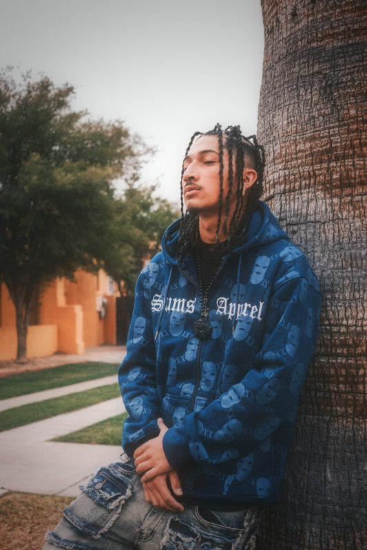 All Over Print Ski Mask Zip Up - Navy Blue